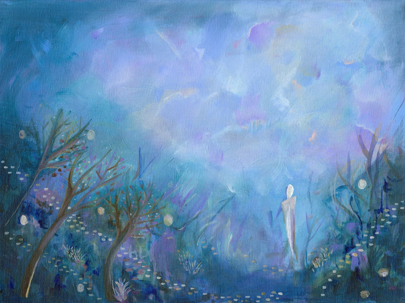 Je réalise des peintures oniriques et poétiques qui oscillent entre abstraction et figuration.